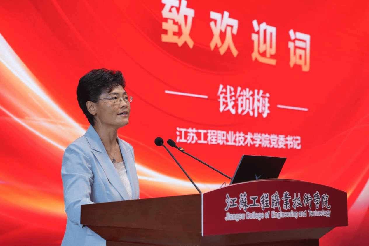 校党委书记钱锁梅代表学校党政和全体师生向所有参会嘉宾、教师及企业代表致欢迎词。她表示,学校始终秉承张謇先生“学必期于用、用必适于地”的职教思想,构建了特色思政体系,并将持续深化育人路径,为纺织服装职业教育高质量发展贡献力量。