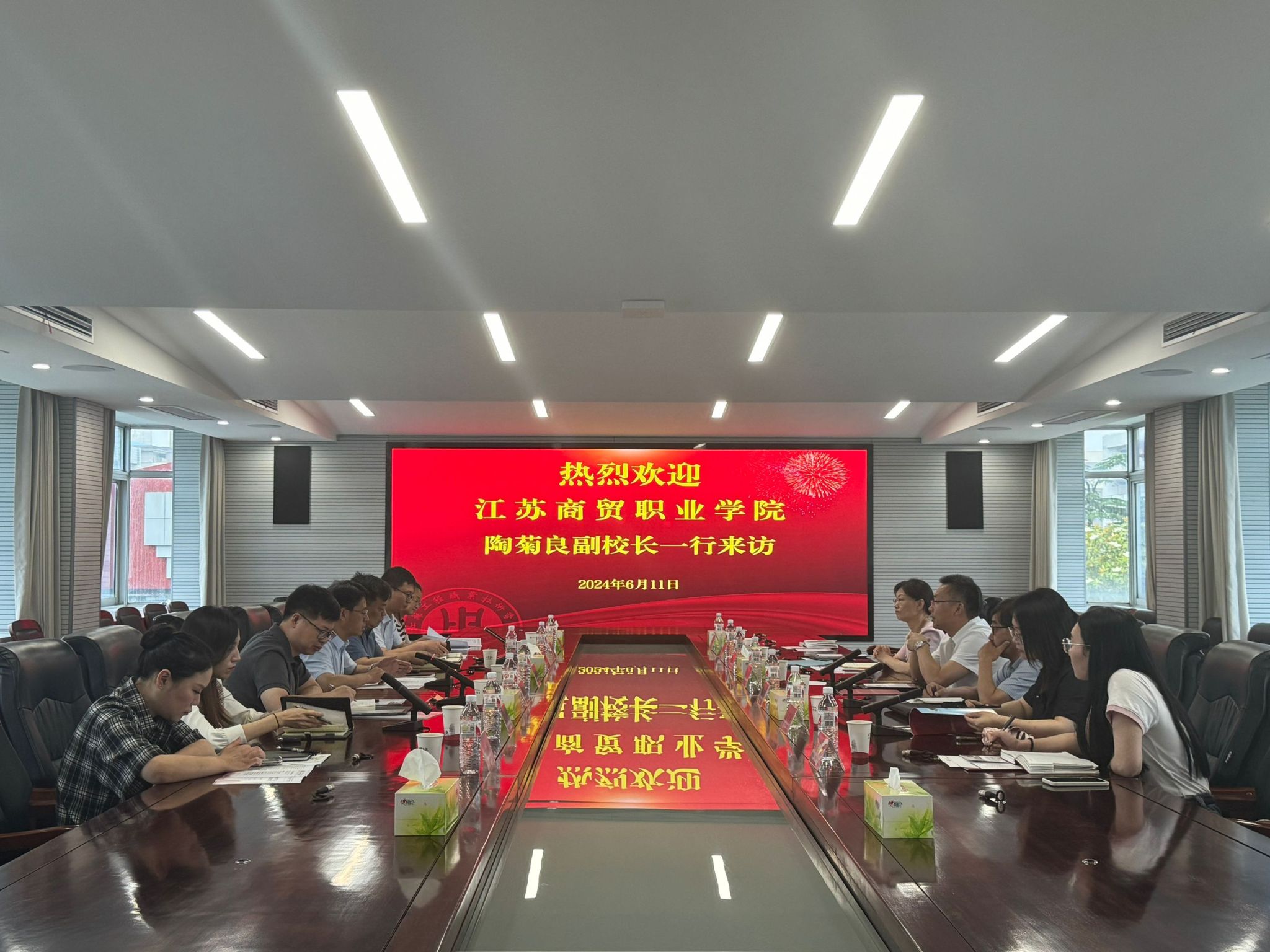 6月11日上午,江苏商贸职业学院副校长陶菊良一行7人来我校调研交流财务预算及资产管理工作。校党委委员、副校长郭江峰,财务处、国有资产管理处相关负责人参加了调研活动。