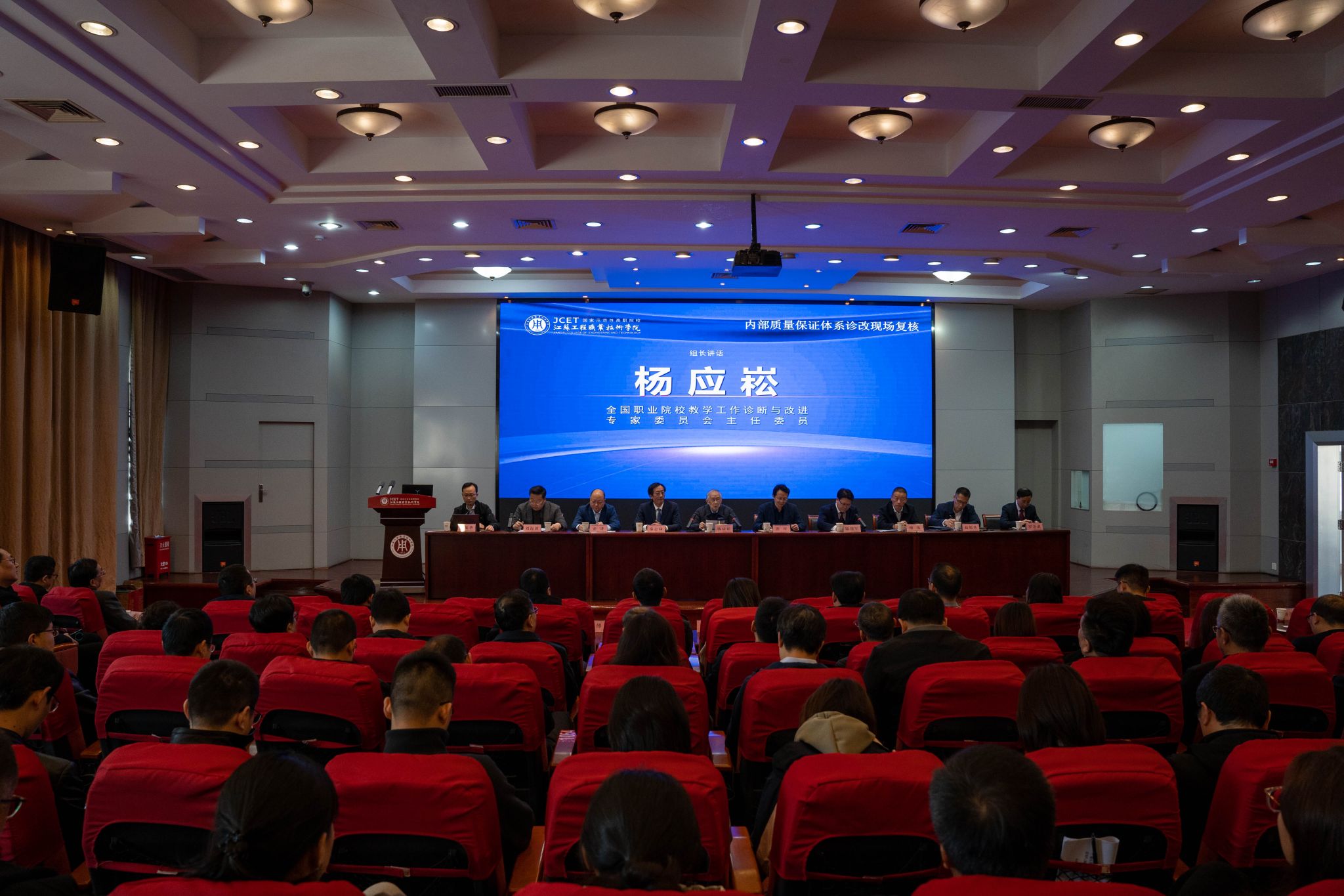 11月19日-22日,受江苏省教育厅和江苏省高职诊改专委会委托,以全国职业院校教学工作诊断与改进专家委员会主任委员杨应崧为组长、常州纺织服装职业技术学院党委副书记、校长洪霄为副组长的诊改复核专家组一行8人,对我校内部质量保证体系诊断与改进工作进行了现场复核。