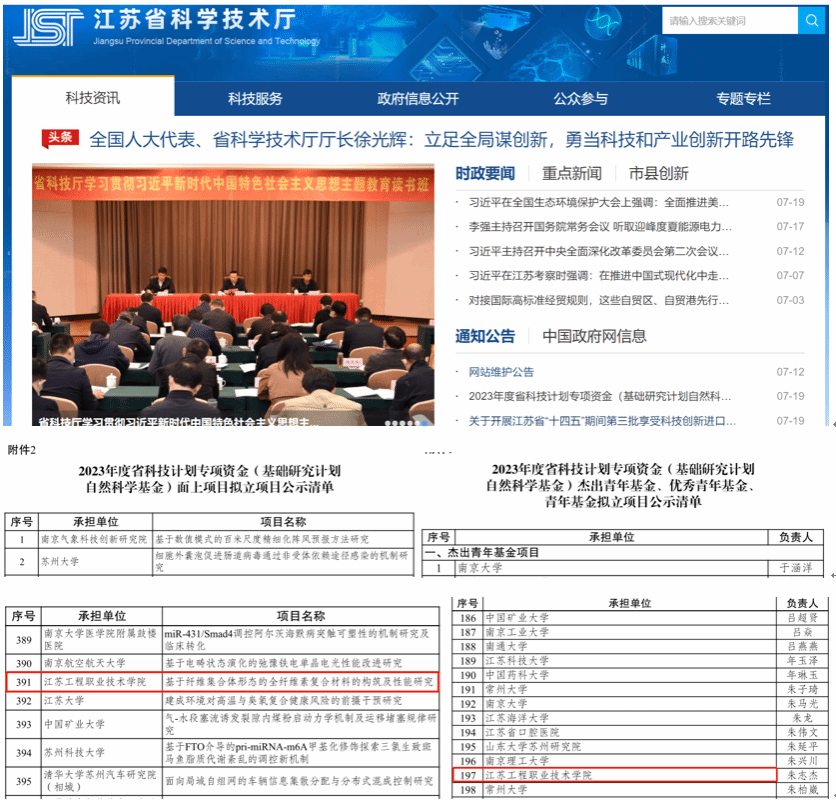 近日,江苏省科学技术厅发布了《2023年度省科技计划专项资金(基础研究计划自然科学基金)拟立项目公示》的通知,我校徐安长老师申报的《基于纤维集合体形态的全纤维素复合材料的构筑及性能研究》项目被列入“面上项目”拟立项名单中,朱志杰老师申报的《微流控构筑结构色纤维/织物及其辐射降温调控机制研究》项目被列入“青年基金”拟立项名单中。这是我校自然科学基金项目申报的重大突破。