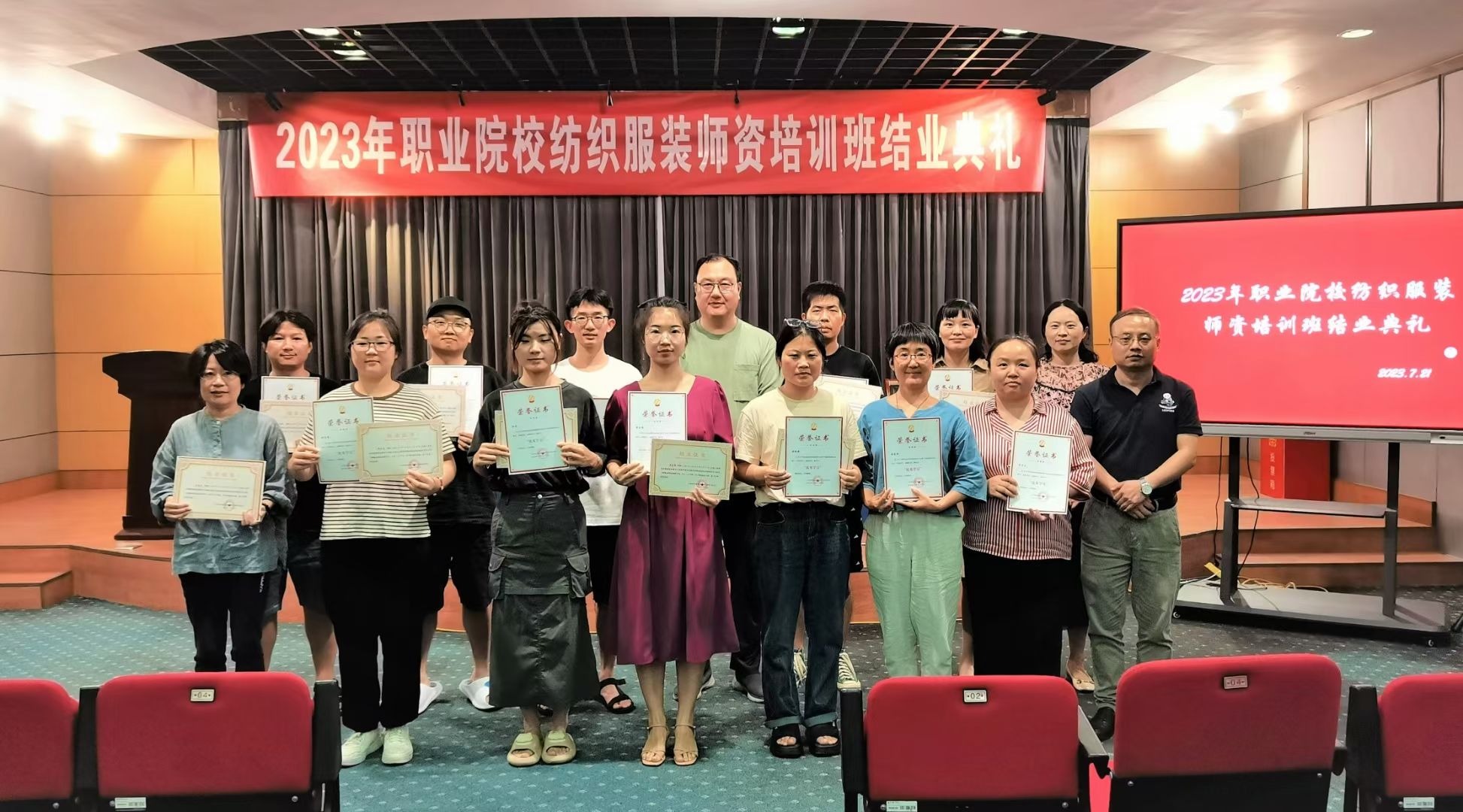 7月11日至23日,在江苏省纺织服装职业教育行业指导委员会精心指导下,我校成功举办了2023年职业院校纺织服装师资培训班。本次比赛得到了青岛希伯润工贸有限公司、北京锦达科教开发总公司、北京凯德凯姆科技有限公司、天津市嘉诚机电设备有限公司、杭州经纬计算机系统工程有限公司、浙江凌迪数字科技有限公司等单位的大力支持,来自全国各个院校以及我校在内的共92名教师参加了培训班。经过为期13天的系统学习,全体培训班学员圆满完成了培训的各项任务并顺利结业。同时,培训班产生了28名优秀学员和33名优秀培训教练。
