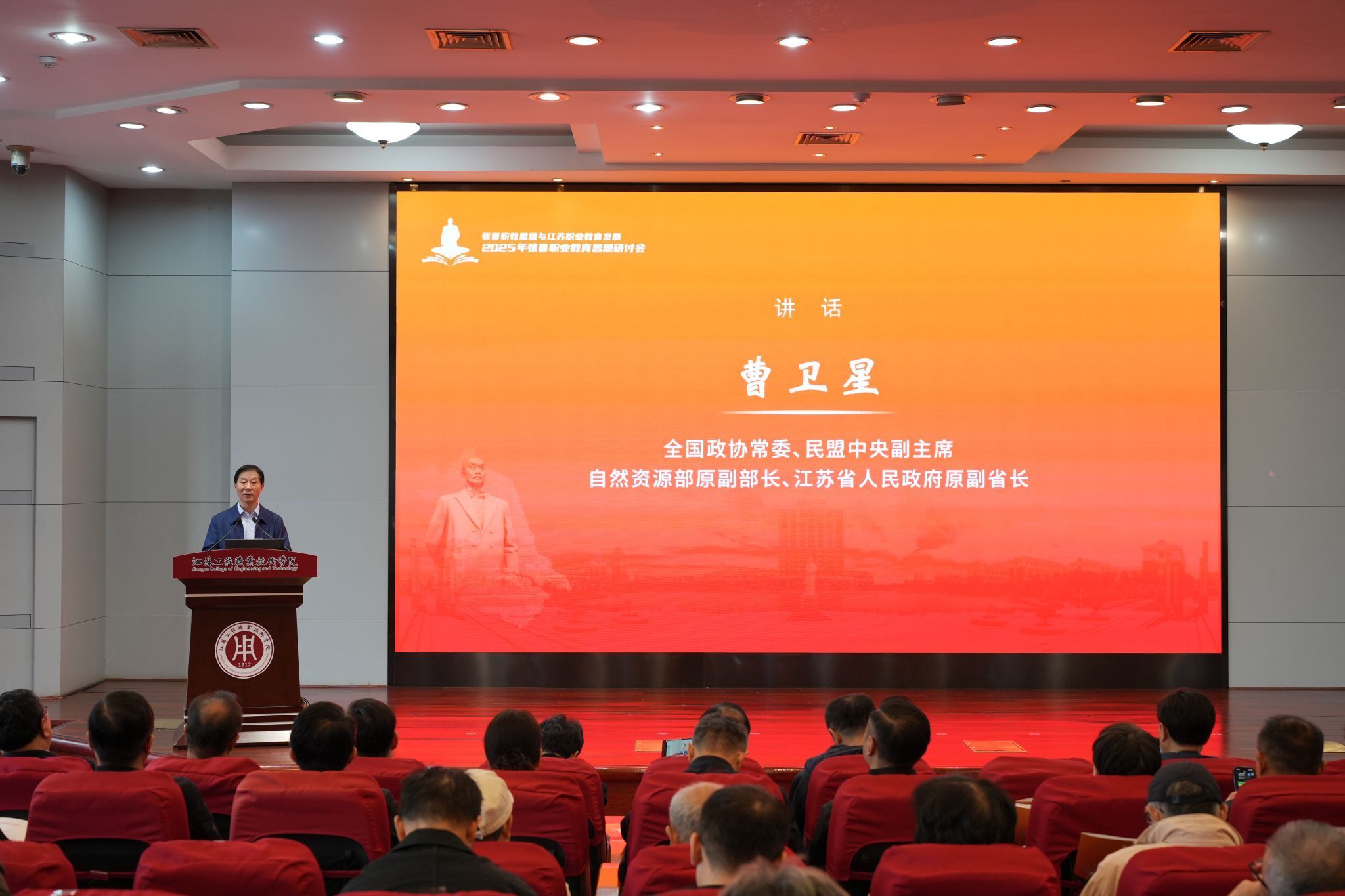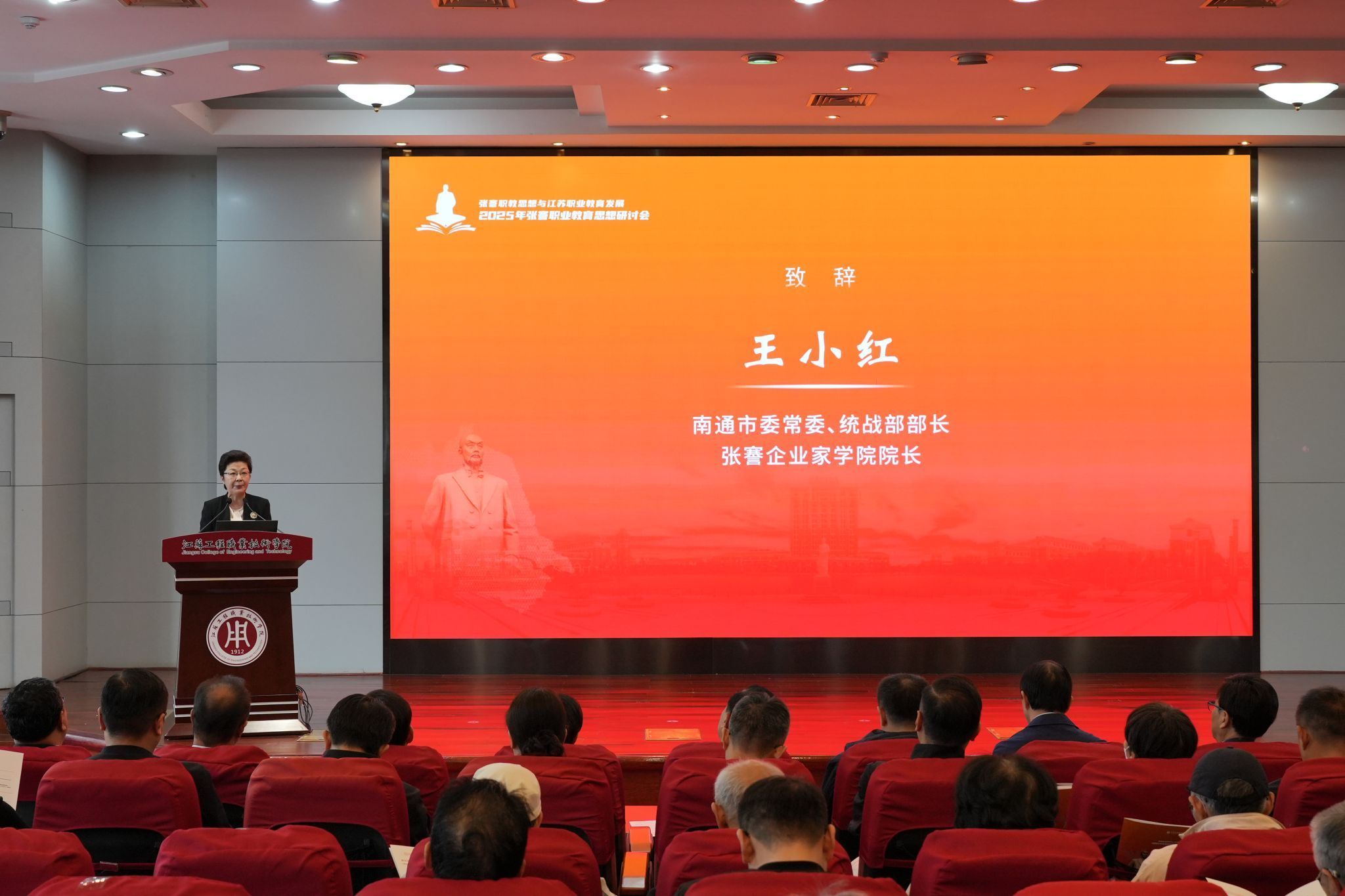11月12日,由江苏省中华职业教育社、南通市委统战部、张謇研究中心(南通)主办,我校与南通市中华职业教育社承办的“张謇职教思想与江苏职业教育”2025年度张謇职教思想研讨会在我校隆重召开。第十四届全国政协常委、民盟中央副主席、欧美同学会(中国留学人员联谊会)副会长,自然资源部原副部长、江苏省人民政府原副省长曹卫星,中共南通市委常委、统战部部长王小红,江苏省委统战部一级调研员、江苏省中华职业教育社秘书长胡恒锁等各级领导出席开幕式并讲话。开幕式由我校党委书记钱锁梅主持。
